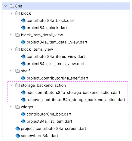 }Similarly, we have RemoveContributor84aStorageBackendAction, used to remove a Contributor from a Project.